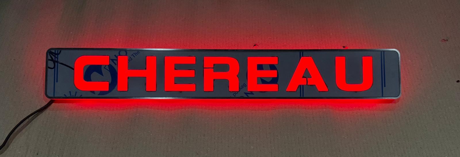 PANNELLO LED ROSSO CON SCRITTA " CHERAU "